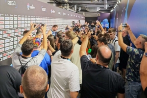 體育資訊9月8日訊 男籃歐錦賽1/8決賽,斯洛文尼亞84-77擊敗意大利,晉級八強。賽后東契奇出現(xiàn)在混合采訪區(qū)接受采訪時,被記者圍得水泄不通。歐媒Eurohoops評論到:“東契奇的出現(xiàn)讓混合采訪區(qū)陷入了混亂。”