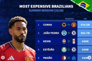 體育資訊9月8日訊 今夏主流聯(lián)賽轉(zhuǎn)會(huì)窗已經(jīng)關(guān)閉,《轉(zhuǎn)會(huì)市場(chǎng)》也列出了巴西球員的今夏轉(zhuǎn)會(huì)費(fèi)最貴情況。