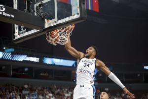 今年歐錦賽至今,字母哥出場4次,場均上陣28.8分鐘可以砍下30分9.8籃板4助攻,投籃命中率是72.5%,三分命中率是33.3%,罰球命中率為61.3%,場均正負值+15.3,平均效率值為33.5。