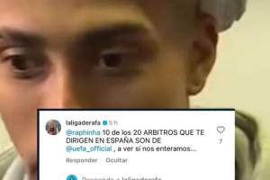 記者Rafa Guerrero在社交媒體中艾特拉菲尼亞,再次提及裁判的判罰問題:“在西班牙,執(zhí)法你的20名裁判中有10位來自歐足聯(lián),看看我們是否能夠理解......”