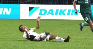 全場(chǎng)比賽補(bǔ)時(shí)階段,伊拉克1-0領(lǐng)先泰國(guó)。此前有“泰國(guó)梅西”之稱的泰國(guó)隊(duì)球員頌克拉辛中圈帶球突破,被身后的伊拉克十號(hào)莫哈納德-阿里一腳踢在懸空的左腿膝蓋處,頌克拉辛當(dāng)場(chǎng)痛苦倒地并翻滾數(shù)圈!