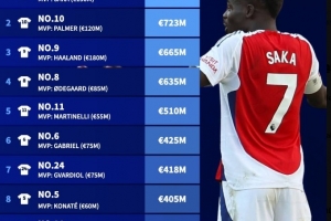體育資訊9月9日訊 英超各隊中,7號是一個非常重要的號碼,身披7號球衣的球員通常是球隊的核心。根據德國轉會市場的統(tǒng)計,英超球員身披7號球衣的球員總身價達7.71億歐元,其中薩卡1.5億歐元最高。