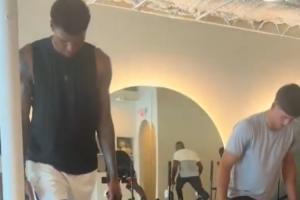 小賈巴里-史密斯、謝潑德、杰夫-格林一同練瑜伽,練習柔韌度平衡感和呼吸。