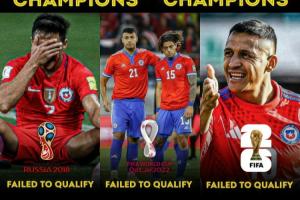 而智利17戰(zhàn)僅得10分提前出局,無緣美加墨世界杯。曾經在2015、16年連奪兩屆美洲杯的智利,連續(xù)3屆無緣世界杯決賽圈,令人唏噓。