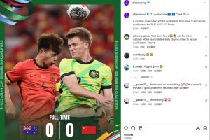 體育資訊09月09日訊 U22國(guó)足0-0戰(zhàn)平澳大利亞,賽后亞足聯(lián)發(fā)文報(bào)告戰(zhàn)果。