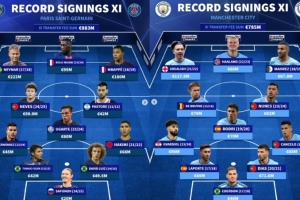 體育資訊1月23日訊 巴黎和曼城在今晚歐冠焦點(diǎn)戰(zhàn)迎來強(qiáng)強(qiáng)對(duì)話,《轉(zhuǎn)會(huì)市場》也列出了兩隊(duì)隊(duì)史引援最貴陣。