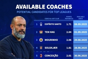 體育資訊9月10日訊 德國轉(zhuǎn)會(huì)市場(chǎng)盤點(diǎn)了目前賦閑的教練,穆里尼奧、滕哈赫、哈維、努諾在列。
