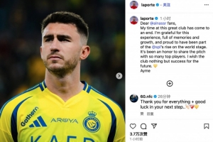 體育資訊9月12日訊 西班牙中衛(wèi)拉波爾特即將回歸畢爾巴鄂競技,他在個(gè)人INS上發(fā)文,告別利雅得勝利,拉波爾特寫道: