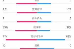 巴黎vs曼城全場(chǎng)數(shù)據(jù):