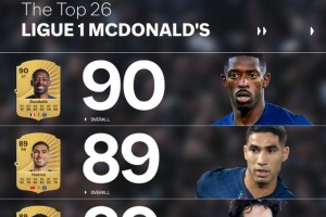 FC26官方法甲球員評分榜:登貝萊90最高,阿什拉夫和維蒂尼亞89