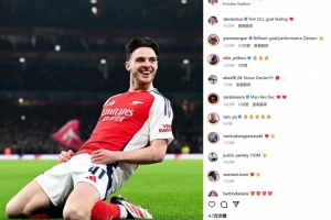 體育資訊1月23日訊 阿森納在本輪歐冠3-0大勝薩格勒布迪納摩,賴斯在比賽首開紀錄。
