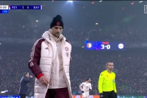 體育資訊1月23日訊 拜仁在本輪歐冠0-3慘敗費耶諾德,替補門將烏爾賴希在最后時刻因為抗議而吃到紅牌。