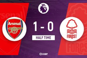 半場結(jié)束,阿森納暫1-0諾丁漢森林。