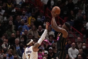 被問(wèn)到熱火時(shí)期的巴特勒、尼克斯時(shí)期的安東尼、雷霆時(shí)期的喬治,誰(shuí)首發(fā)、誰(shuí)替補(bǔ)、裁掉誰(shuí)時(shí),霍里表示:“我會(huì)裁掉喬治,因?yàn)槟鞘窃诶做膯讨危視?huì)讓巴特勒首發(fā),因?yàn)槲倚枰愎ナ丶鎮(zhèn)?,這是他而不是甜瓜首發(fā)的原因,季后賽吉米是另一種野獸。”