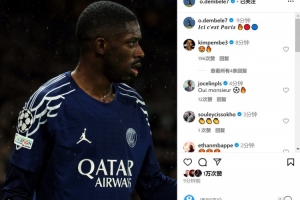 賽后登貝萊在社交媒體上曬出自己的照片,慶祝勝利,配文:“這里是巴黎!”