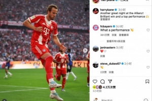 凱恩社媒寫道:又一個(gè)在安聯(lián)球場(chǎng)的美妙之夜!精彩的勝利和頂級(jí)的表現(xiàn) ??