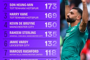 自2017/18賽季以來的英超進球參與榜(進球 + 助攻)