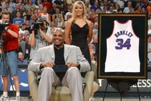 2004年,巴克利進入太陽隊的榮譽之戒(類似球衣退役的榮譽),現(xiàn)場巴胖子對著球迷一通深情告白:“你們是我熱愛菲尼克斯的原因,是你們讓我每晚都保持能量,為球隊奮戰(zhàn)?!?/p>