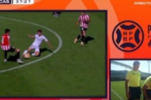 阿韋洛亞率領(lǐng)的卡斯蒂亞在對陣畢巴B隊的比賽中也遭遇了類似的爭議。比賽第36分鐘,由于塞斯特羅累計兩張黃牌被罰下,卡斯蒂亞不得不以10人應(yīng)戰(zhàn)。這張紅牌同樣充滿了爭議。卡斯蒂亞請求查看VAR,主裁判大衛(wèi)-洛佩斯也確實(shí)回看了這一動作。然而,皇馬替補(bǔ)席不敢相信眼前發(fā)生的一切,球員本人也搖頭否認(rèn),堅稱自己只是碰到了球。