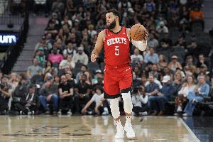 火箭后衛(wèi)范弗里特上半場三分手感不錯,他上半場打了19分24秒,6次出手全部都在三分線外,命中3球,拿到9分2籃板4助攻。