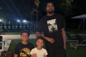 體育資訊09月15日訊 現(xiàn)火箭隊球探、前火箭球員DJ-奧古斯汀今日更新Instagram,曬出了自己倆兒子和杜蘭特的合影,并寫道:“杜叔叔@杜蘭特。”