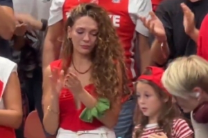 體育資訊9月16日訊 男籃歐錦賽決賽土耳其83-88不敵德國,賽后奧斯曼妻嬌妻場邊灑淚,女兒也情緒低落,奧斯曼趕緊上前安慰。