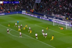 比賽第9分鐘,埃因霍溫防守球員禁區(qū)內(nèi)解圍時踢倒對方送點,普羅米斯-戴維主罰一蹴而就!