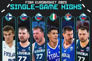 體育資訊9月17日訊 今天,男籃歐錦賽官推曬出了本屆賽事的單場得分榜。具體為: