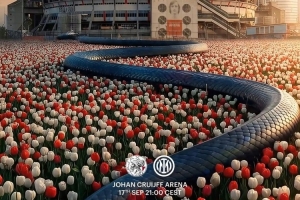 賽前,國米為此役發(fā)布視頻海報(bào),海報(bào)中,一條藍(lán)黑巨型靈蛇正游向阿賈克斯克魯伊夫球場。