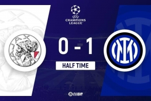 上半場傷停補時3分鐘,半場結束,國米暫1-0阿賈克斯。