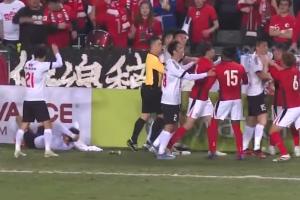 上半場拜合拉木為廣東隊(duì)先入一球,脫衣向中國香港球迷看臺(tái)慶祝。隨后雙方球員產(chǎn)生沖突。