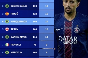 92-93賽季以來歐冠后衛(wèi)進球榜: