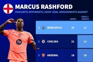 體育資訊9月19日訊 巴薩在本輪歐冠焦點(diǎn)戰(zhàn)2-1力克紐卡斯?fàn)?,拉什福德雙響建功。數(shù)據(jù)統(tǒng)計顯示,紐卡也是拉什福德生涯進(jìn)球最多的對手之一。