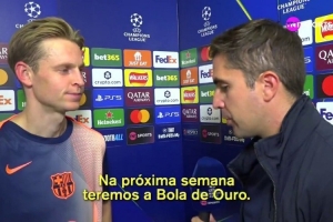 體育資訊9月19日訊 歐冠聯(lián)賽階段首輪比賽,巴薩客場2-1擊敗紐卡,巴薩中場德容賽后接受媒體的采訪,被問到了隊(duì)友競爭金球獎的話題。