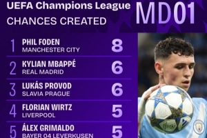 體育資訊9月19日訊 歐冠首輪已經(jīng)完賽,數(shù)據(jù)機(jī)構(gòu)squakwa也統(tǒng)計(jì)了首輪的創(chuàng)造機(jī)會(huì)和創(chuàng)造重大機(jī)會(huì)情況。福登以8次創(chuàng)造機(jī)會(huì)居首。