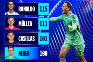 目前,諾伊爾在歐冠已經(jīng)收獲100場勝利,成為第四名做到這一點(diǎn)的球員,在他身前是C羅(115勝)、托馬斯-穆勒(111勝)和卡西利亞斯(101勝)。