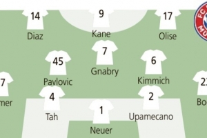 體育資訊9月20日訊 拜仁即將對陣霍芬海姆,德媒《慕尼黑日報》也預(yù)測了拜仁的首發(fā)陣容,萊默爾改踢左后衛(wèi),若納坦-塔和博伊出戰(zhàn)。