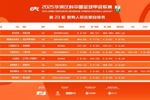 中甲23輪主裁判選派安排(詳情如圖):