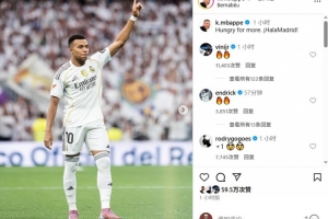 姆巴佩本場(chǎng)比賽打入一球,他寫(xiě)道:“渴望更多,Hala Madrid!”