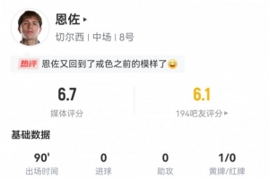 體育資訊9月21日訊 本輪英超曼聯(lián)2-1切爾西。此役恩佐首發(fā)打滿全場,球員全場重點(diǎn)數(shù)據(jù)如下↓