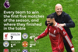 據(jù)英超官方統(tǒng)計,英超歷史上共有14支球隊賽季開局5連勝(包括本賽季利物浦),此前做到這點的13支球隊之中,4支球隊最終贏得當(dāng)賽季英超冠軍,分別是切爾西(2次)、利物浦和曼城。