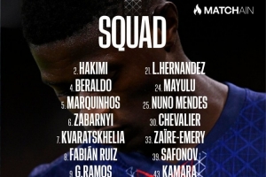 體育資訊9月21日訊 北京時(shí)間明天凌晨2點(diǎn)45分,巴黎將在法甲第5輪比賽中客場(chǎng)對(duì)陣馬賽,巴黎公布了此役的球員名單。登貝萊、杜埃、若奧-內(nèi)維斯、巴爾科拉因傷缺席。