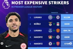 體育資訊1月23日訊 曼城已經(jīng)官宣簽下法蘭克福前鋒馬爾穆什,《轉(zhuǎn)會市場》也統(tǒng)計了英超歷史前鋒引援榜情況。