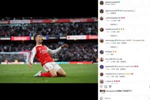 本場比賽馬丁內(nèi)利在替補(bǔ)登場后補(bǔ)時絕平,賽后他也在社媒曬出滑跪慶祝進(jìn)球照片,配文寫道:“我們i繼續(xù)拼搏!”
