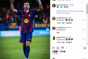 費蘭-托雷斯賽后在社交媒體上曬出照片,慶祝取勝+打進(jìn)2球,配文:“??+??=????”
