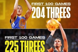 體育資訊9月22日訊 美媒Clutch Points曬出一張文班、庫里還有克萊的生涯前100場比賽三分球的命中總數(shù)圖。其中庫里生涯前100場進(jìn)了200個三分,而克萊是204個,而文班作為內(nèi)線投中了225個。