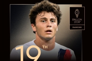 體育資訊9月23日訊 2025年金球獎排名陸續(xù)公布,巴黎中場若奧-內(nèi)維斯獲得第19名,生涯首次提名。