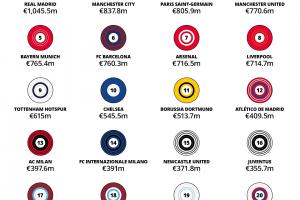 曼城依然是英格蘭收入最高的俱樂部,上賽季收入達8.38億歐元,但與榜首的皇馬相差2.08億歐,為收入榜前二球隊歷史最大差距。