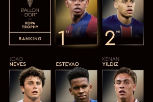 體育資訊9月23日訊 金球獎(jiǎng)官方公布了科帕獎(jiǎng)的最終排名順序。