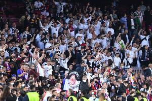 法蘭克福俱樂部方面并未收到來自意大利的正式通知,而是通過媒體才得知該禁令。雙方上一次交鋒是在2023年3月,當(dāng)時(shí)兩隊(duì)球迷之間爆發(fā)了大規(guī)模騷亂,法蘭克福球迷在老城區(qū)與那不勒斯的極端球迷和警方爆發(fā)嚴(yán)重街頭沖突,汽車被燒毀,街道滿目瘡痍,事后,多名法蘭克福球迷被當(dāng)?shù)胤ㄔ号行蹋渲袃扇吮慌?年2個(gè)月監(jiān)禁。